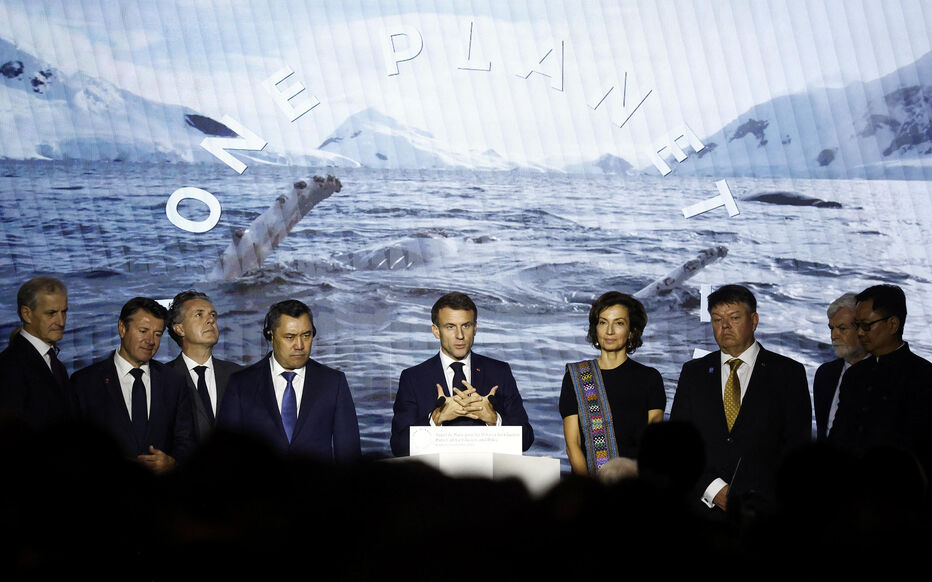 French President Emmanuel Macron delivers a speech as part of the One Planet Polar Summit at the National Museum of Natural History in Paris, France, November 10, 2023. YOAN VALAT/Pool via REUTERS